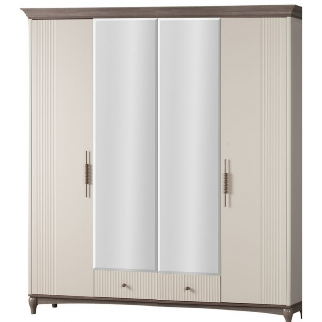 Фасады: МДФ, декор – кашемир серый, зеркало с фацетом