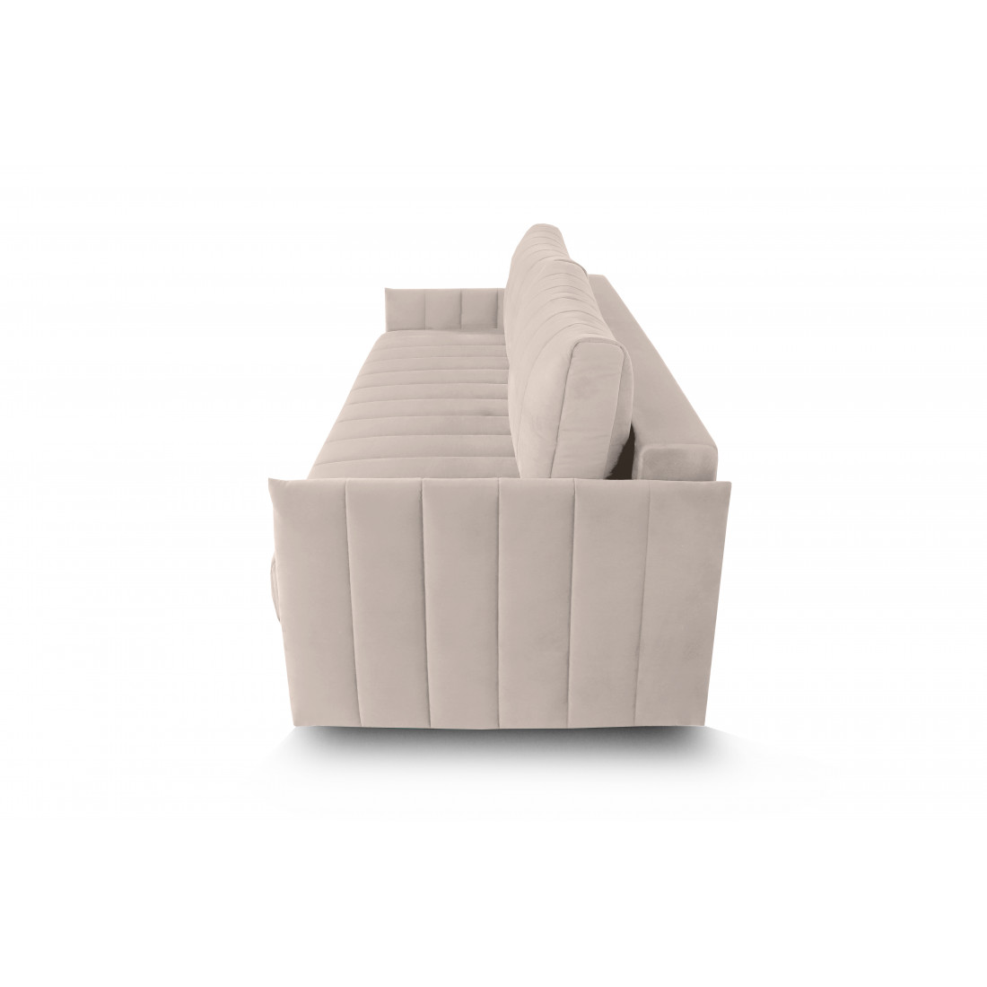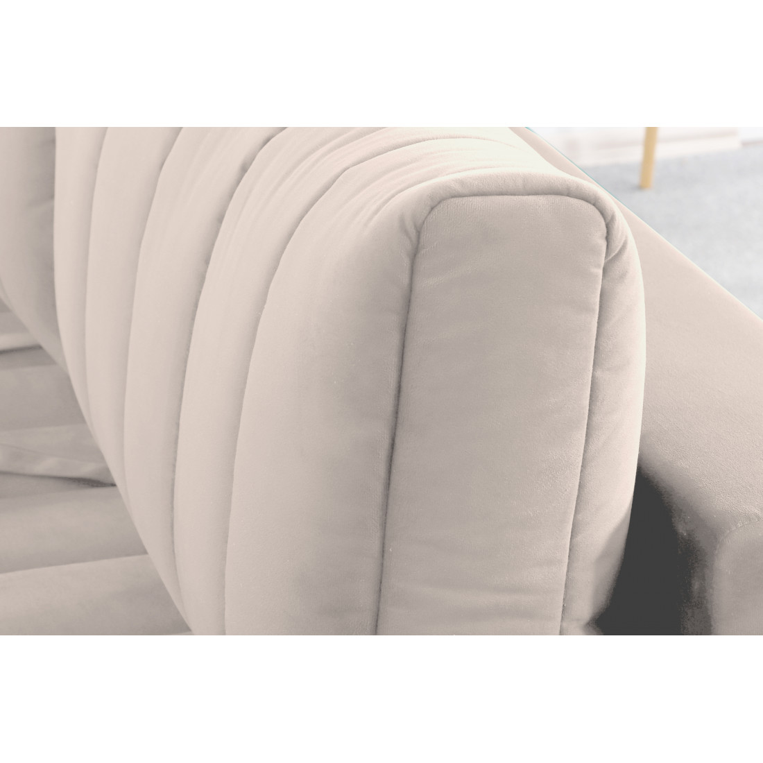 Подушки, сиденье и подлокотники дивана оформлены модной вертикальной стёжкой в современном стиле.