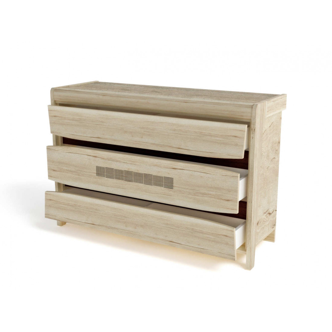 Комод Мале - обладатель лаконичного и свежего дизайна. Он является представителем коллекции «Мале». В этой коллекции особое внимание уделено внешнему виду и тактильным ощущениям от прикосновения к мебели, схожей с натуральным деревом по рисунку и шероховатости. Деко