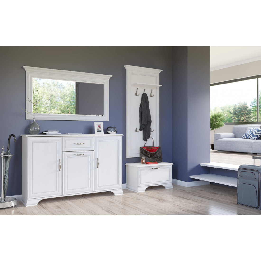 10. Возможность обустройства прихожей, используя тумбы под обувь 1D или 3D, вешалку L, тумбы с выдвижным ящиком 2D1S или 1D1S с соответствующими им по размеру зеркалами.
