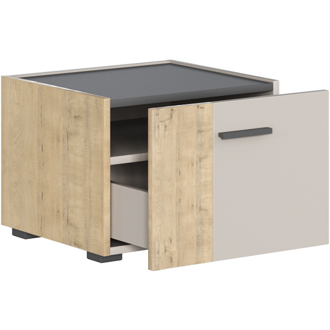 •  Тумба с выдвижным ящиком, за фасадом ящика присутствует ниша;