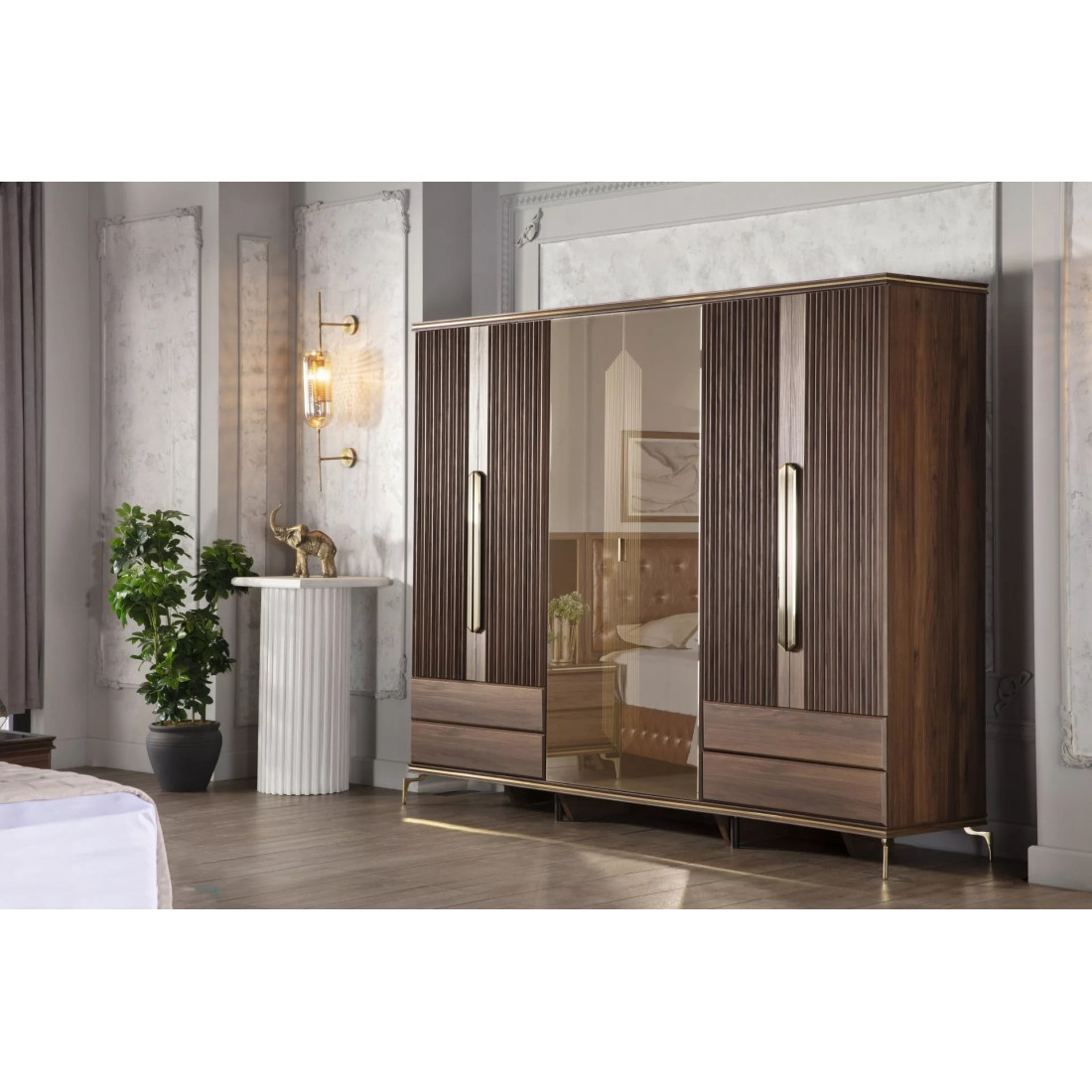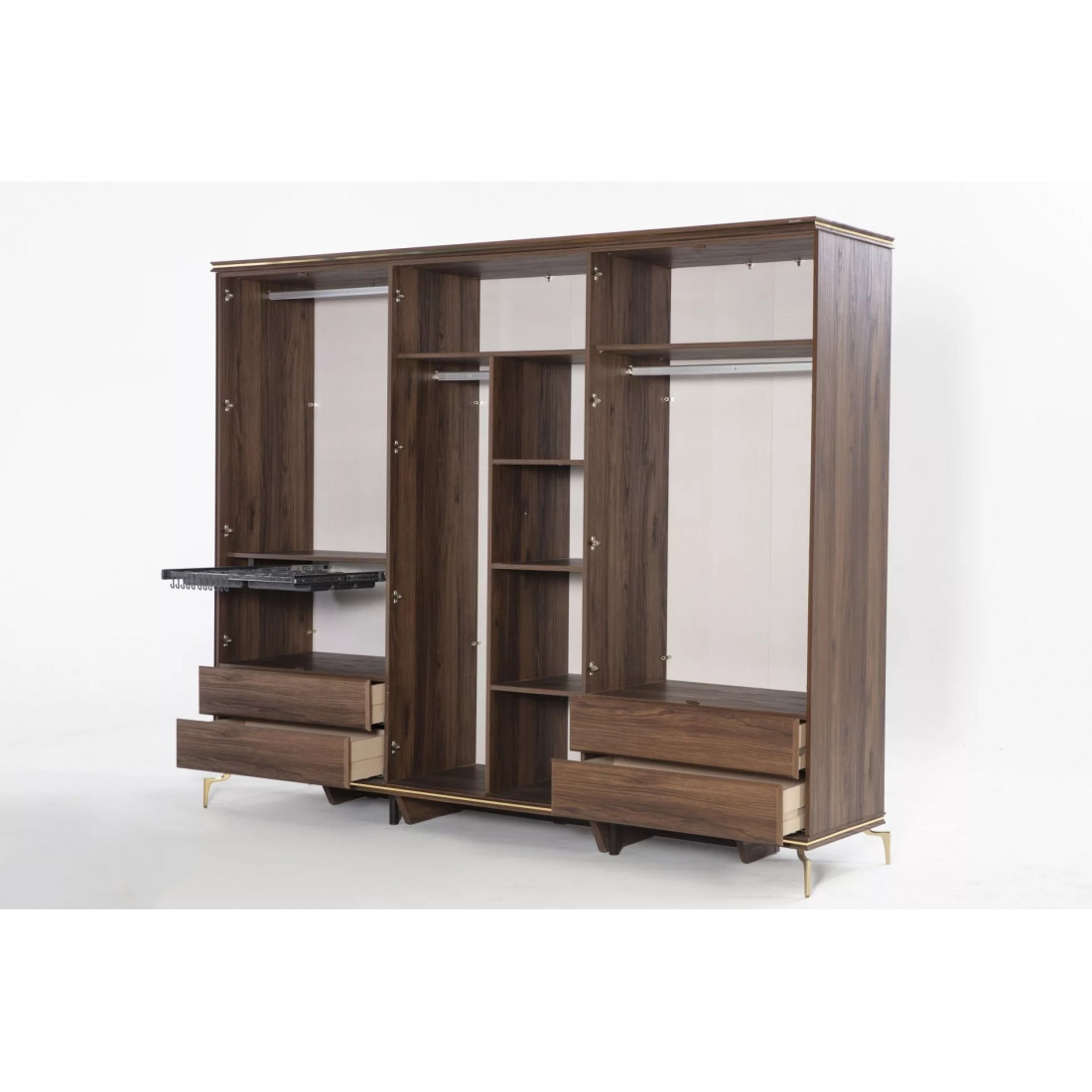 Шестидверный шкаф для одежды с зеркалом "Montego" – это великолепное и выгодное предложение для большой просторной спальни или гардеробной. Взять один большой шкаф намного удобнее, чем набирать много маленьких и думать, хорошо ли они сочетаются между собой. Изделие выполнено в современном дизайне.