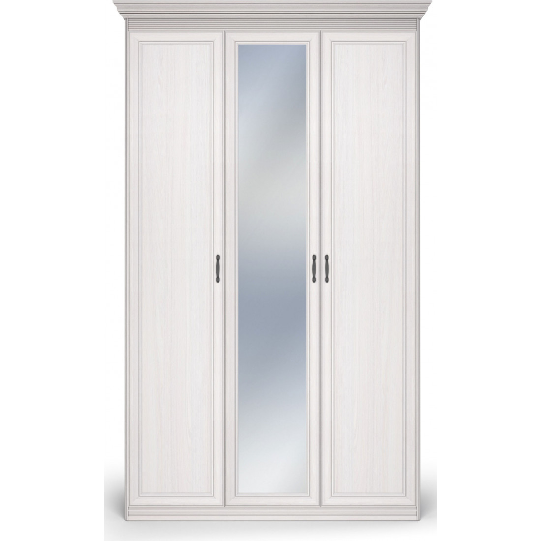 Шкаф 3-х дверный зеркальный Неаполь Ясень анкор светлый (патина "серебро")