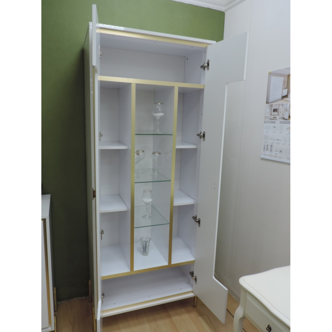Купить витрину в гостиную можно отдельно, так и дополнив ее тумбой или полкой из серии.
