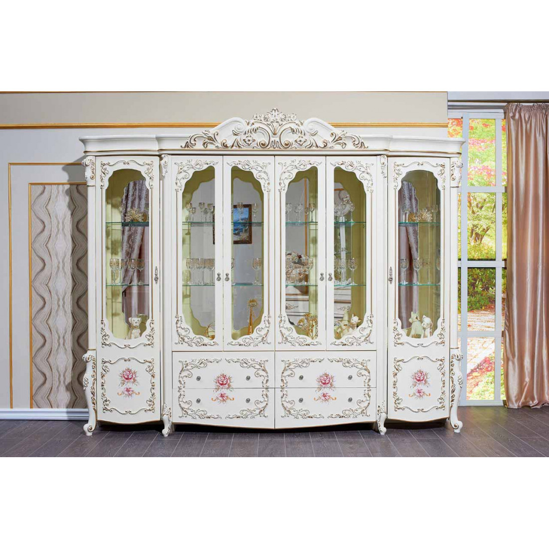 Шкаф-витрина 6-х дверный Венеция Классик (крем)