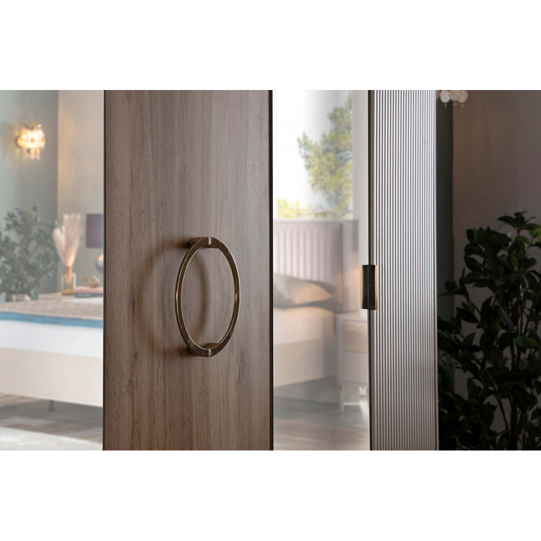 В цветовой гамме спального гарнитура Sanvito предпочтение отдается кремовому и ореховому цветам.