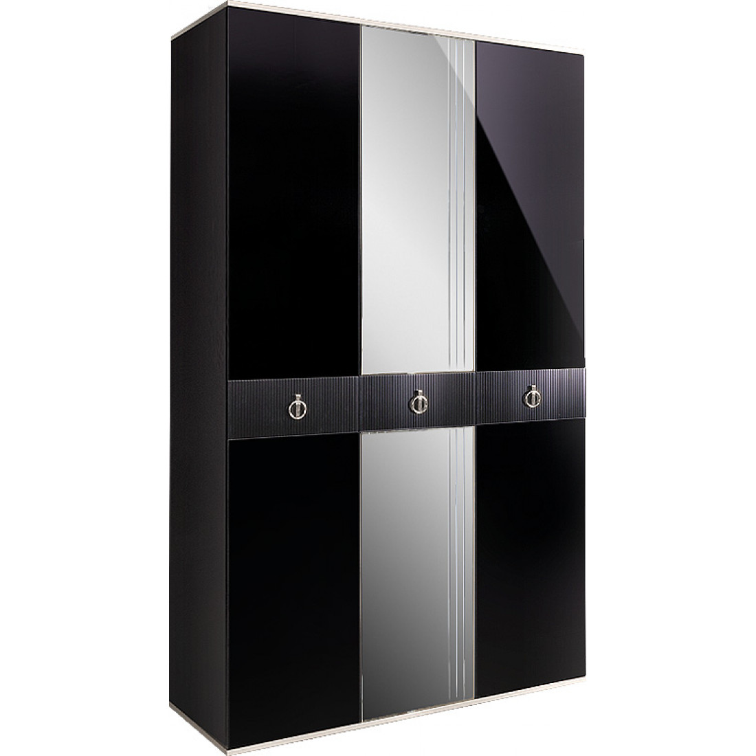 Четырехстворчатый шкаф для одежды с зеркалом Rimini Solo РМШ1/4 (s) (черный)