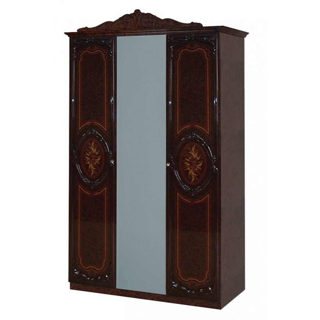 Трехстворчатый шкаф для одежды Роза (могано), от Российской фабрики "ДИА мебель". Выполнен в элегантном классическом стиле. Цвет могано с глянцевым покрытием придают еще больше эстетичности. Шкаф поделен на две большие части, каждая из которых имеет не только вместительные полки для белья но и штангу для вешалок. Такой шкаф поможет с легкостью сэкономить место и удивит Вас своей компактностью.