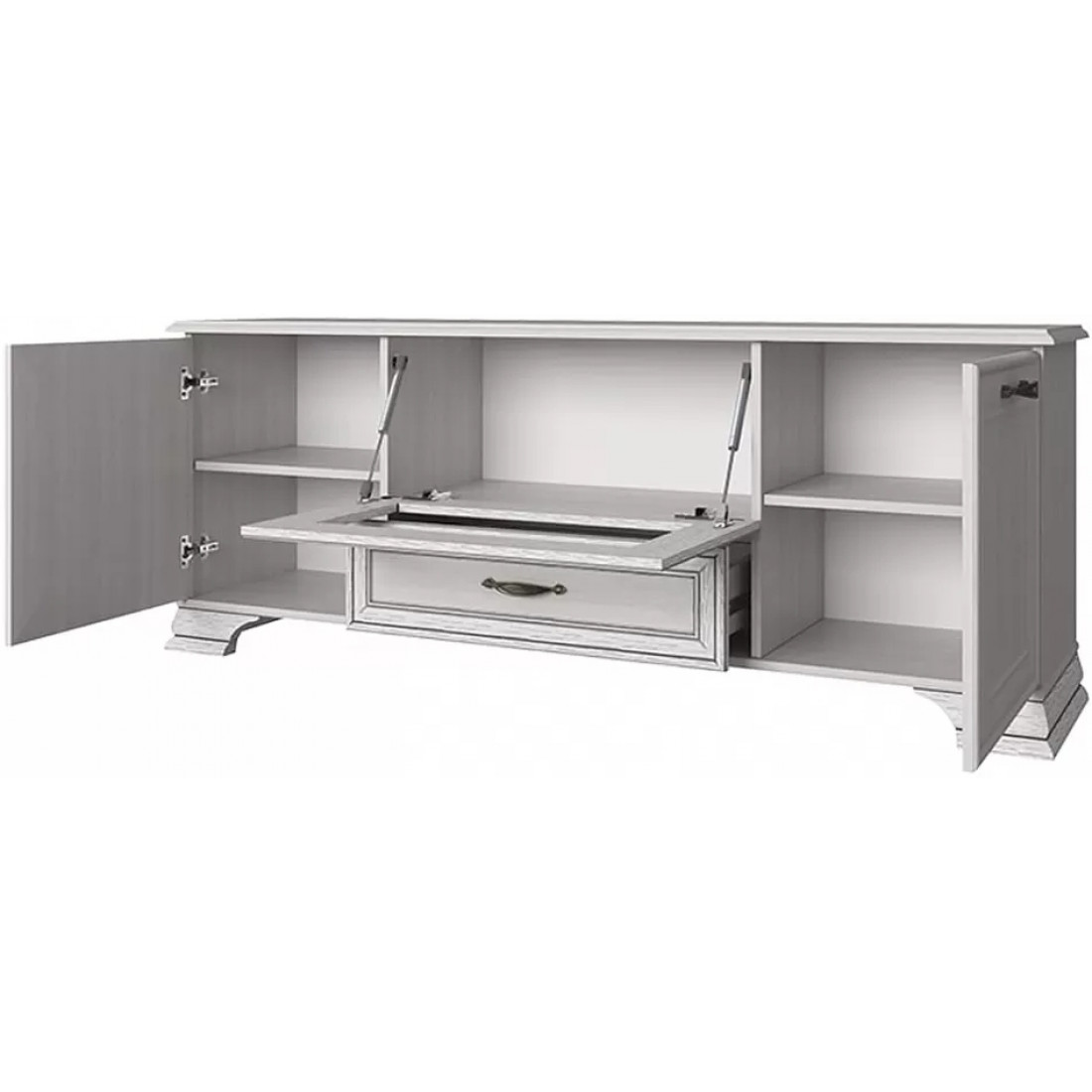 Тумба под телевизор Tiffany RTV 1V2D1S крем вудлайн роскошно дополнит различный по назначению интерьер. Это классика, которая всегда остается модной и стильной. Сочетание светлого оттенка с древесной структурой создадут атмосферу тепла и уюта в вашем доме.