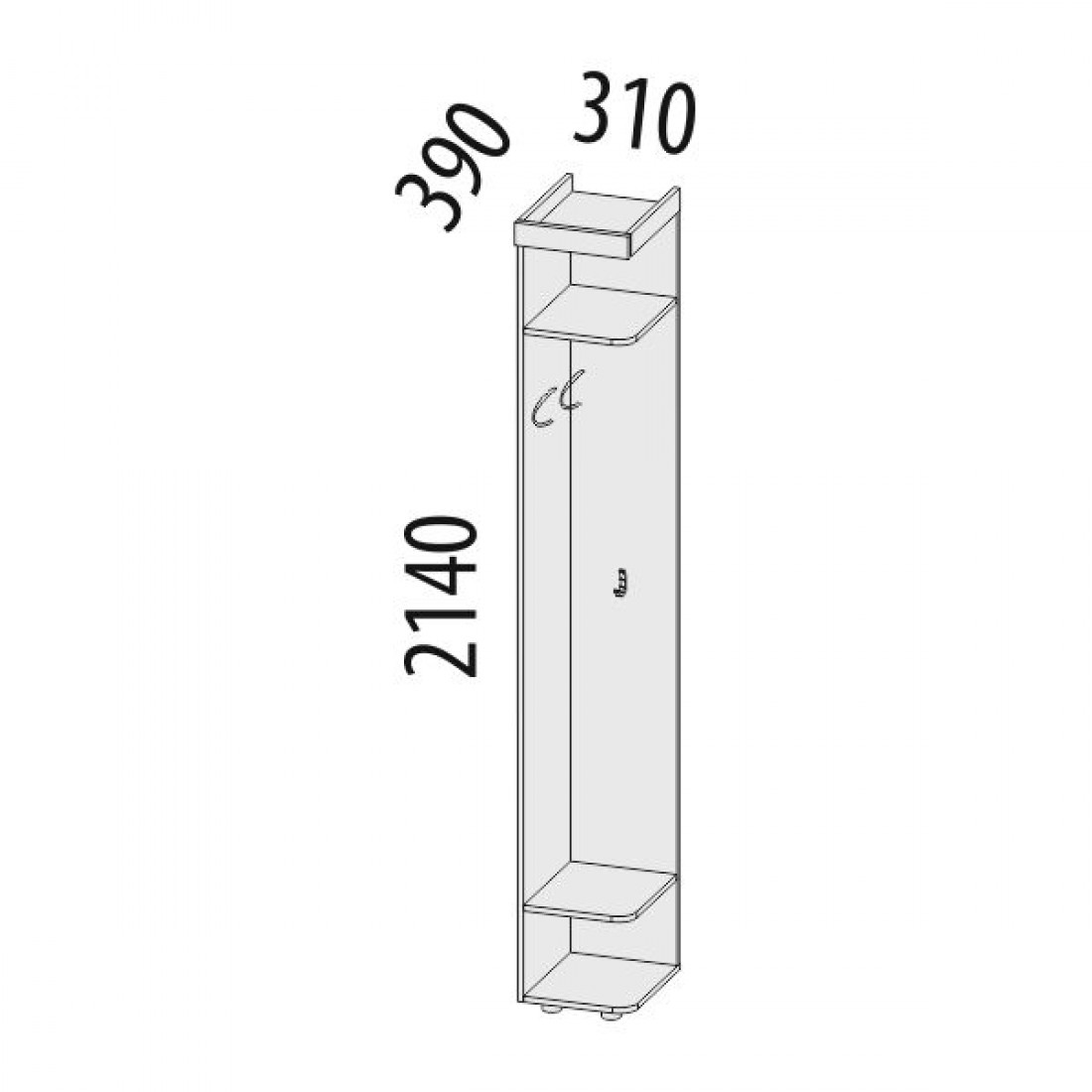 Торцевой стеллаж «Мэри 39.15» — элемент модульной программы прихожей «Мэри». Ножки регулируются по высоте, что позволяет скорректировать неровности пола. Модуль является универсальным и может быть установлен как с левого, так и с правого торца прихожей.